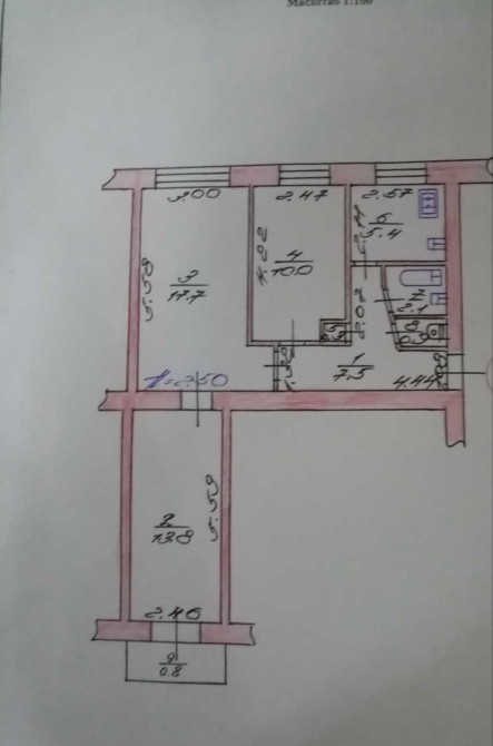 Квартира на 4 поверсі у 5-поверховому цегляному будинку.