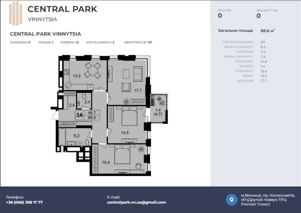 • Загальна площа 88.6 м2