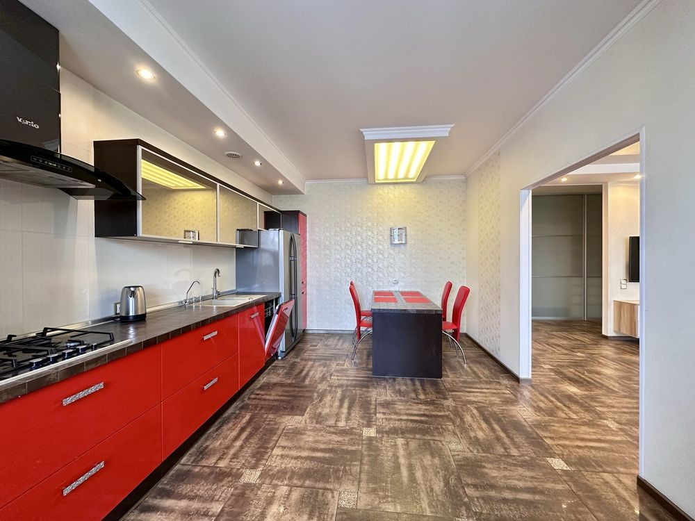 Простора кухня 21 м2, одна кімната прохідна, але при потребі можна зробити окремою;