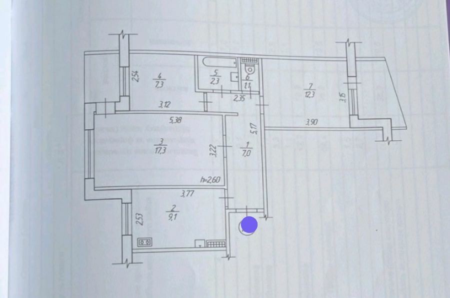 Квартира знаходиться на 7 поверсі 9 поверхового будинка.