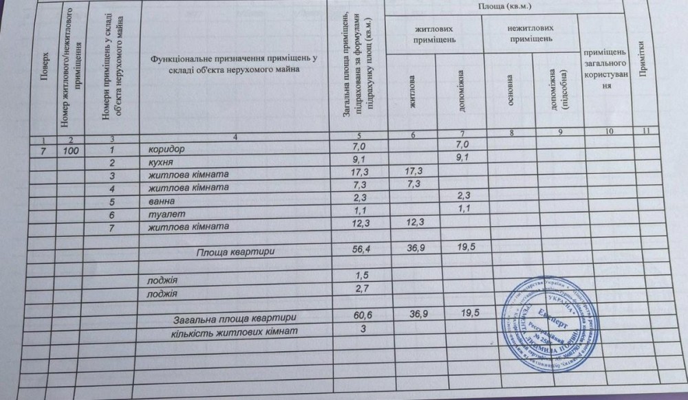 Загальна площа квартири 60,6 м.кв.