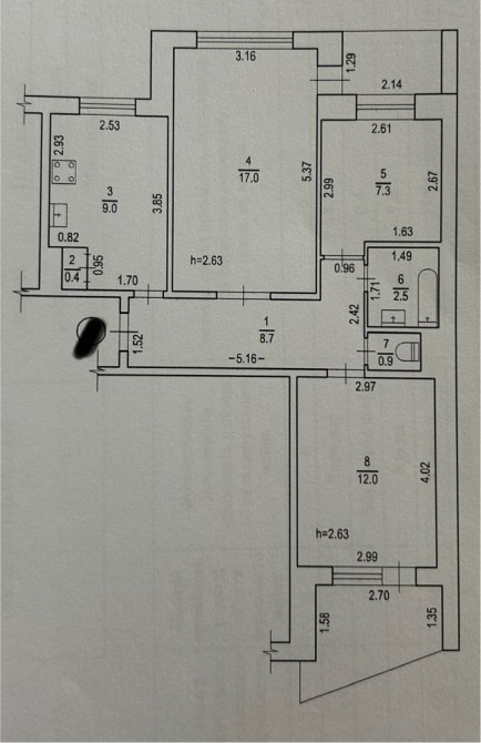 • Площа кухні 9 м2