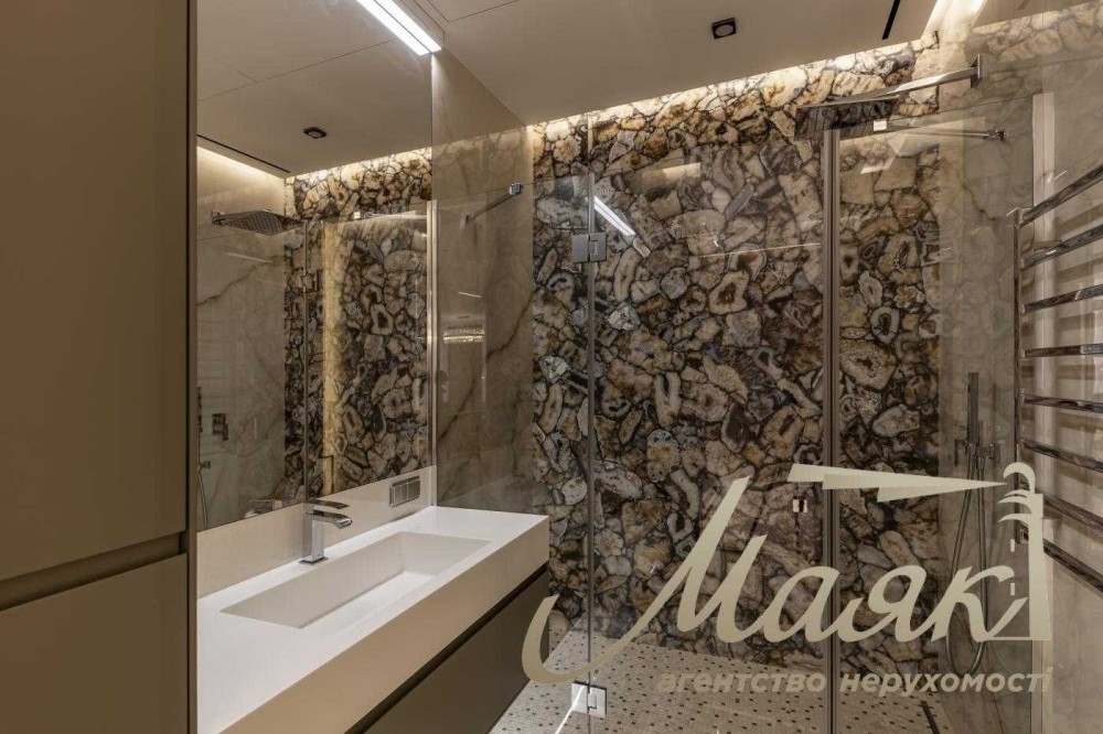 Кожна деталь у квартирі продумана до дрібниць, а високоякісні меблі та побутова техніка від провідних світових брендів забезпечують комфорт і затишок. У квартирі встановлена система розумний будинок, тепла підлога, три системи очищення води.