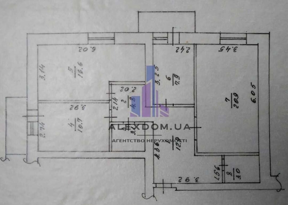 З окремі кімнати площею 21 кв.м, 16.6 кв.м і 8 кв.м.