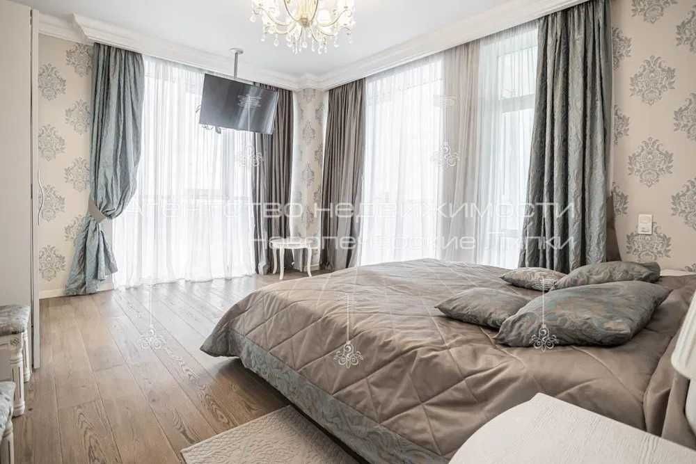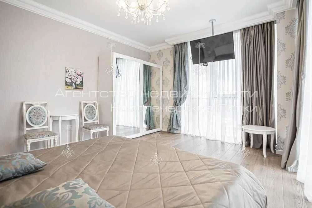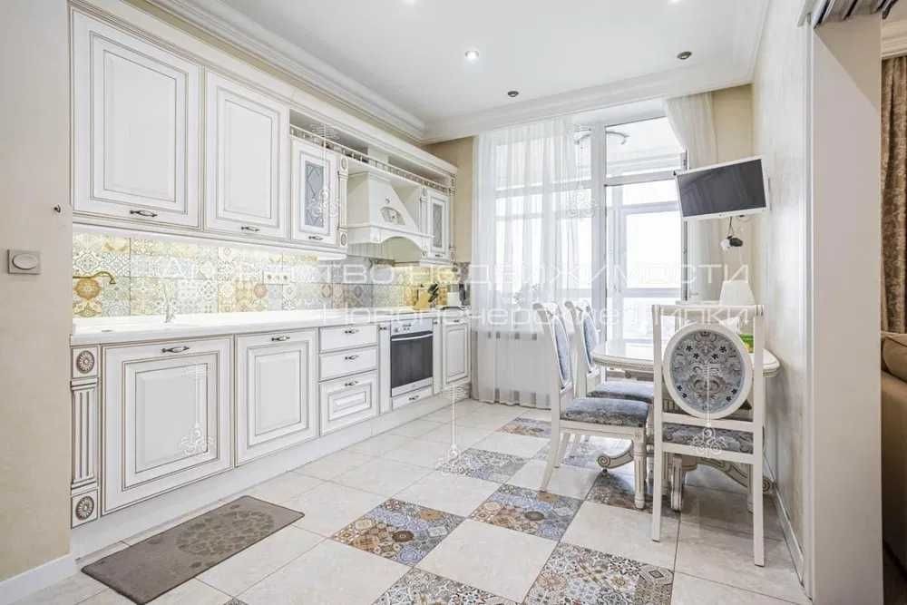Видова 3-кімнатна квартира площею 120м2 в елітному ЖК «Новопечерські Липки». Євроремонт в Класичному стилі, вбудована кухня, вітальня, спальна кімната, дитяча, 2 засклені балкони, два повноцінні санвузли з ванною та душовою кабіною.