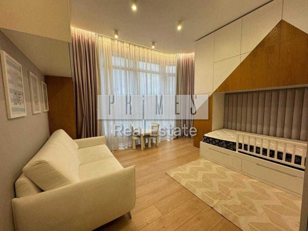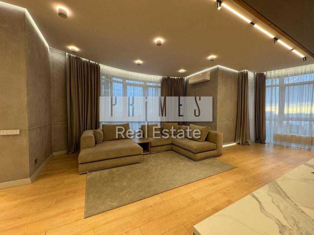 #3093 Квартира дуже простора та світла. Все зроблено під супровід талановитих дизайнерів від відомої архітектурної студії. Раціональне зонування – велика кухня-студія, господарський блок та дитяча. У ході ремонту замінено траси опалення, склопакети від провідного виробника – двокамерні та ударостійкі. Використовувалися найдорожчі матеріали та комплектуючі топових європейських виробників. Італійська кухня Cesar. Дизайнерське освітлення, виробництва Німеччини, Іспанії – Тobias Grau, Vibia, а залі та на кухні трекові світильники Centrsvet. Двері прихованого монтажу заввишки 3м - Італія. Дорогі італійські штори. На стінах - декоративна штукатурка. У зоні кухні та вітальні мармурова панель Laminam. Продаж побутової техніки Liebherr, Bosch. Душова та вся сантехніка Antonio Lupi. У квартирі встановлено систему очищення води. Відеоспостереження