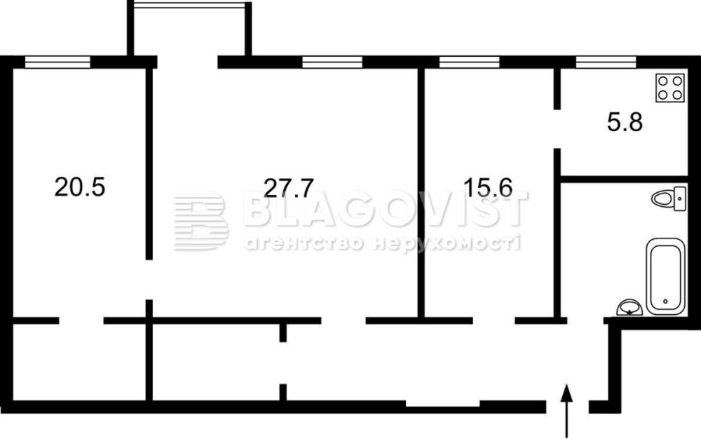 • Площа кухні 5.8 м2