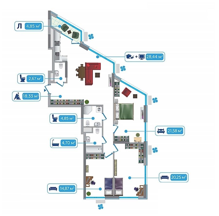 • Трикімнатна