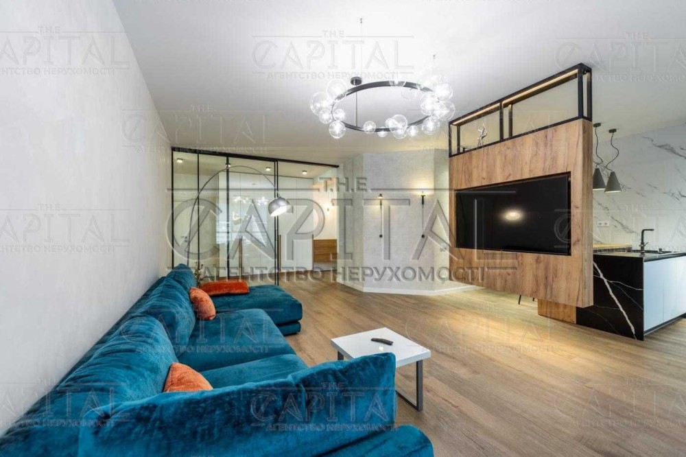 Загальна площа квартири 135 м2, площа кухні 45 м2. Нова, світла квартира з дизайнерським ремонтом, 3 спальні, кухня-вітальня.