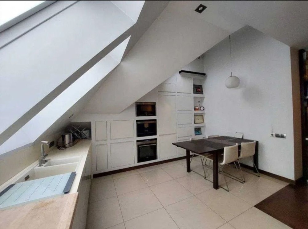 Повністю авторський проект. Кухня з білими глянцевими фасадами та з сучасною технікою "Siemens". Два санвузли, панорамні вікна, вихід на власну терасу. Додатково до квартири належить ще велике підвальне приміщення з ремонтом у стилі "LOFT".