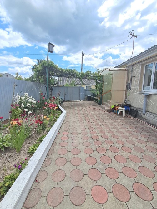 -подвір’я бруківка, великий сад,гарно оброблена земля під городництво,квіти, декоративні дерева та кущі;