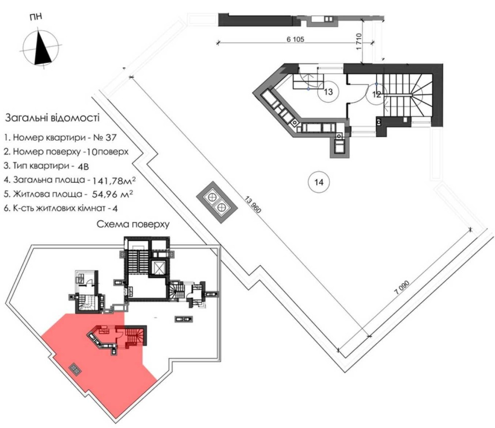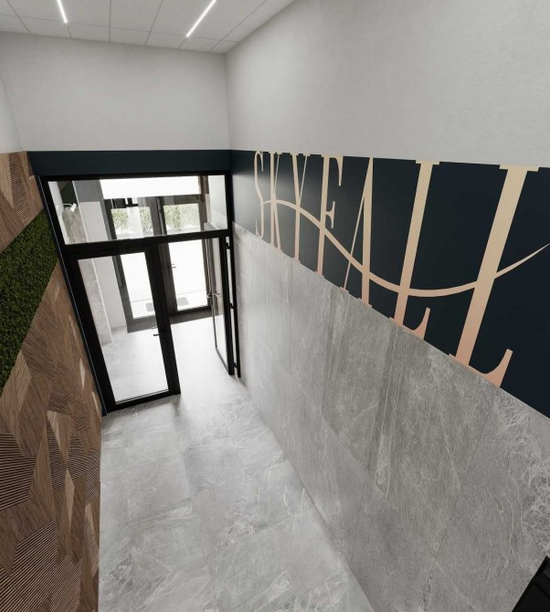 Чотирьохкімнатна квартира з терасою під номером 36 знаходиться на 9 поверсі в 9 поверховій секції ЖК Skyfall.