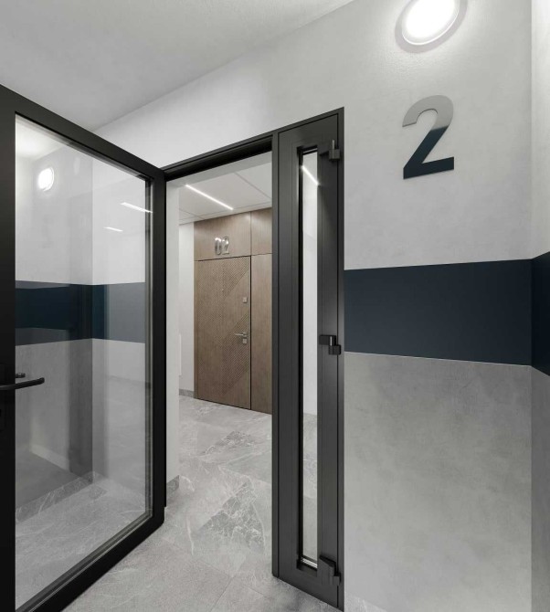 Квартира з панорамними вікнами REHAU та металевими утепленими броньованими вхідними дверима.