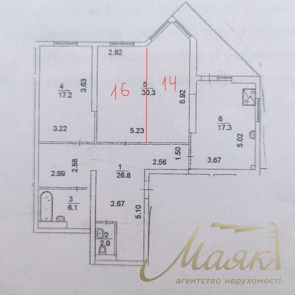 • Планування: кухня, 2 окремі спальні кімнати, 2 санвузли, балкон (можливе перепланування)