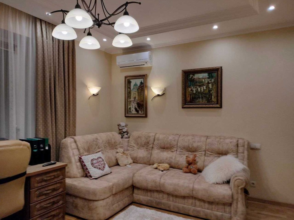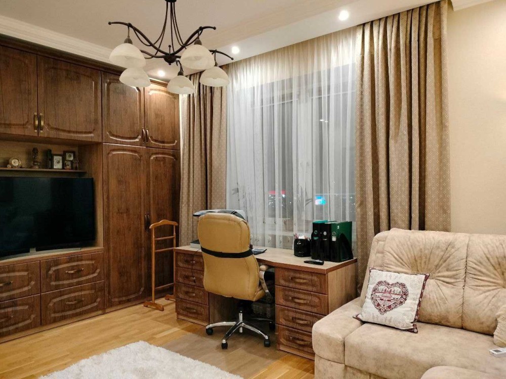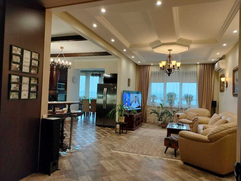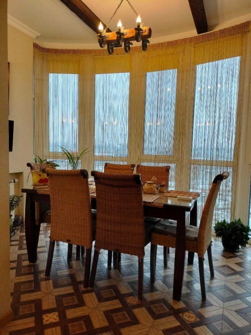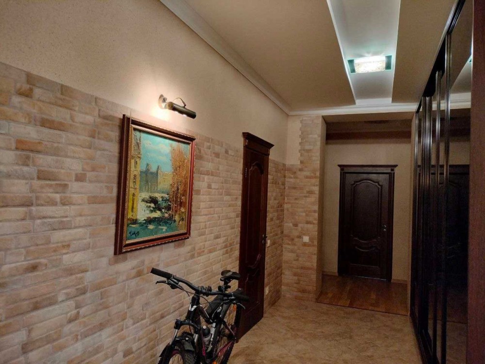 - Затишна, атмосферна та витончена класика інтер`єру настільки приваблює та закохує в себе, що хочеться залишитись тут уже назавжди. В квартирі виконано якісний , коштовний ремонт, з використанням тільки дороговартісних та натуральних матеріалів. Все продумано до дрібниць, все створювалось в цих стінах, виключно, для проживання. Скрізь поставлено потужні склопакети - жодного шуму чи фону з вулиці. Тепла підлога , де кахель, в інших приміщеннях - якісна паркетна дошка. Величезна ванна кімната з прекрасно працюючою витяжкою, є вмістка шафа- побутова. Краєвид - з усіх вікон Вода ( гостьова, кухня, 1-ша спальня - на озеро Вербне; дитяча та господарська спальня- у бік Дніпра, Саду каменів та Північного мосту). В квартирі виділені зони відпочинку, а саме: їдальня із панорамним краєвидом та спальня із релакс-зоною для приємних смакувань чаєм чи кавою із прямим виглядом на Дніпро. В квартирі всі якісні меблі ( ліжка, просторі шафи-купе, м`які меблі, столи, стільці). Повністю вся сантехніка та техніка - якісні. В кожному приміщенні кондиціонер на обігрів. В квартирі якісне оздоблення стін. Вона супер-тепла, північна сторона світу відсутня в квартирі. Все дуже аурно і виконано зі смаком. Відео надішлю по запиту.
