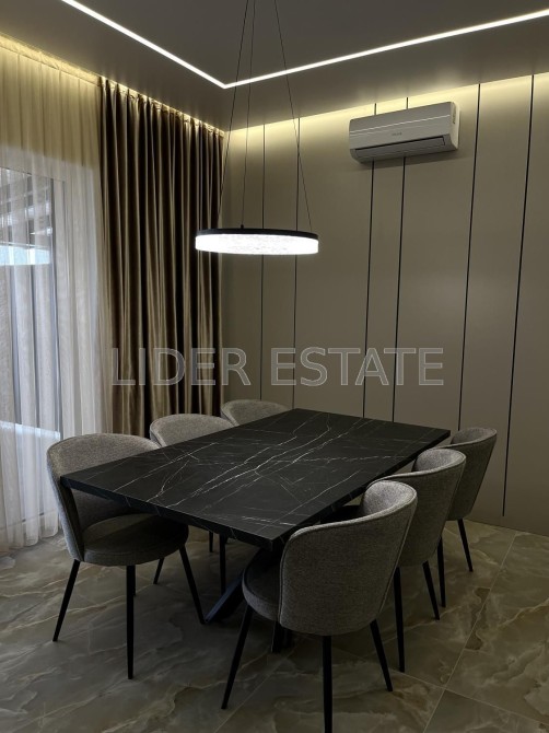 Кухня-студія з плазмовим телевізором, електричною плитою, мікрохвильовою піччю, електричною духовкою, холодильником, посудомийною машиною та іншою побутовою технікою. У санвузлі пральна та сушильна машини. Кондиціонер, панорамні вікна, меблі, Wi-Fi. Безпека та комфорт - відеодомофон, охорона території, паркан. Вид з вікон - на двір, вулицю та парк.