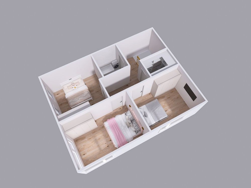 Планування дозволило розмістити 3 ізольовані спальні, кухню студію, два санвузла.