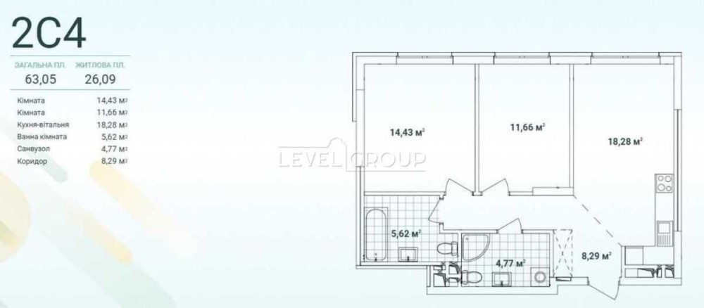 Загальна площа — 63,05 м²