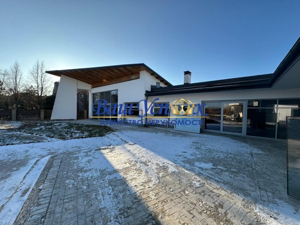 Дом в одном уровне с большими панорамными окнами и прекрасным видом на Днепр.