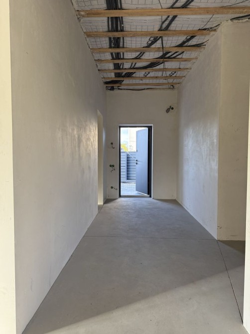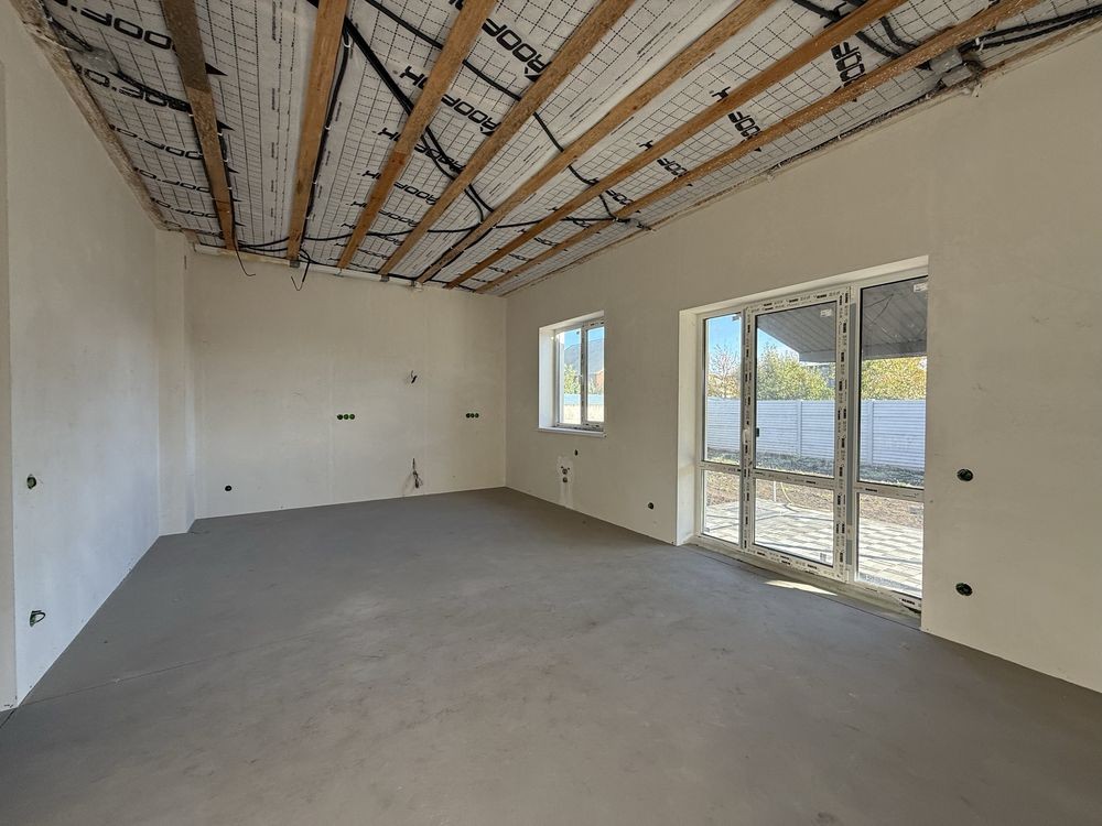 По БУДИНКУ повністю розведена ЕЛЕКТРИКА та САНТЕХНІКА; зроблена ЧИСТОВА стяжка стін та підлоги