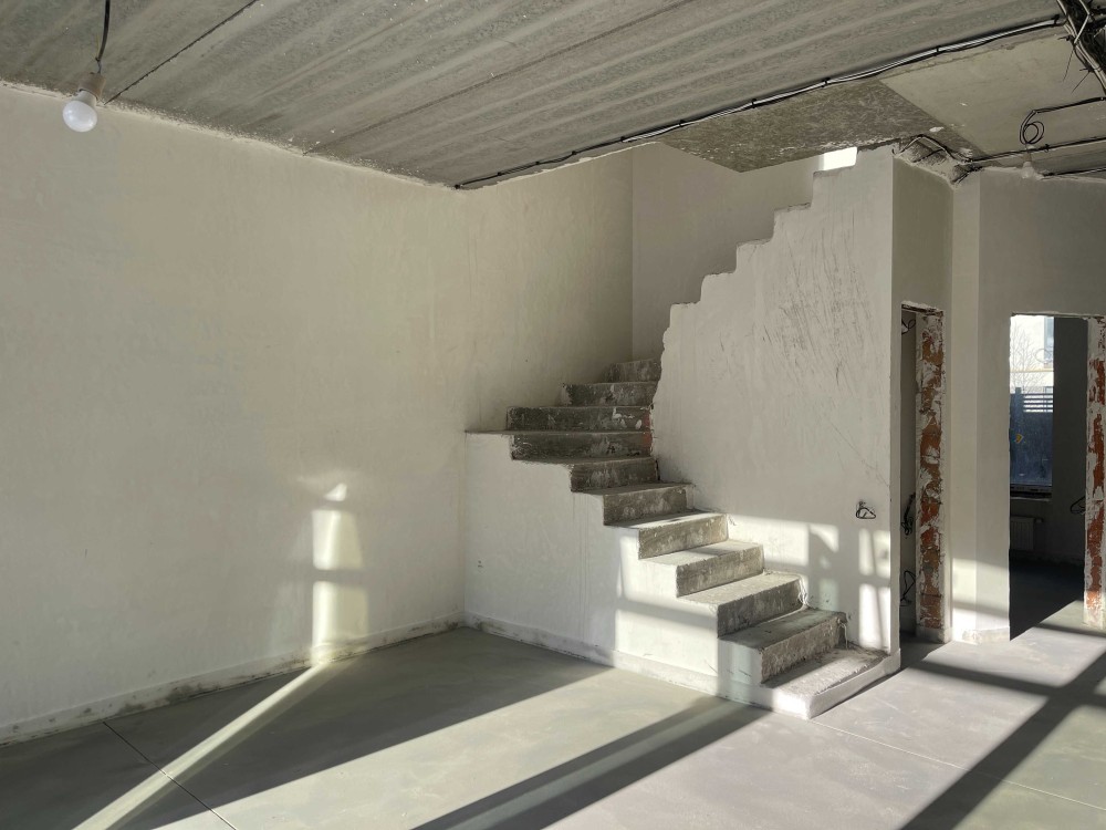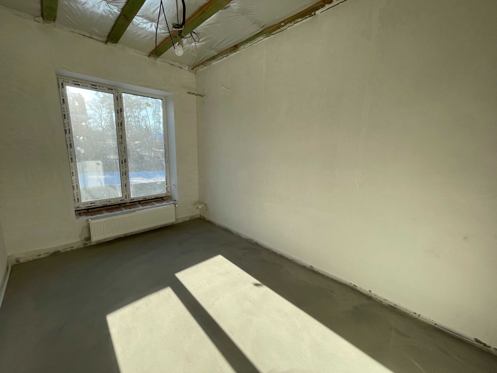 Стан: стіни під чистове оздоблення. Проведено електрику та сантехніку, розведенно опалення, тепла водяна підлога 1поверху.
