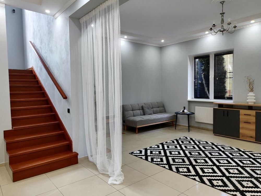 Сучасний двоповерховий будинок розташований у мінікотеджному містечку на 4 будинки із закритою асфальтованою територією, озелененням та паркомісцями. Територія доглянута, є власна свердловина, асфальтований під’їзд, автоматичні ворота.