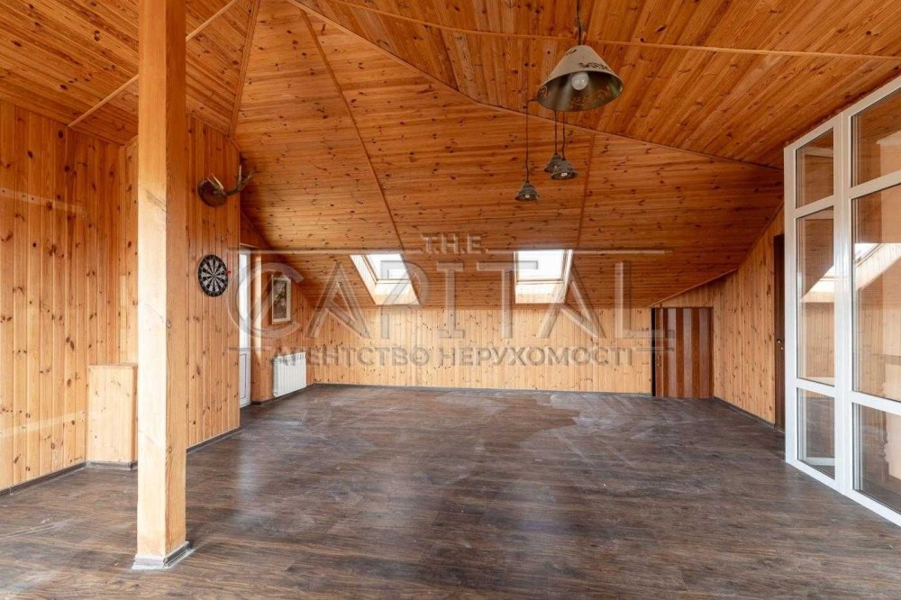 Три спальны на другому поверсі. На третьому поверсі велика кімната 30 кв.м обшита екологічною дерев'яною вагонкою, можна зробити спортзал або кіно зал.