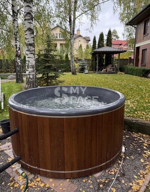 Розташований на 20-ти сотках землі правильної прямокутної форми, з власним озером 120 м2 де можна плавати (максимальна глибина 2.05м), альтанка та велика купель.