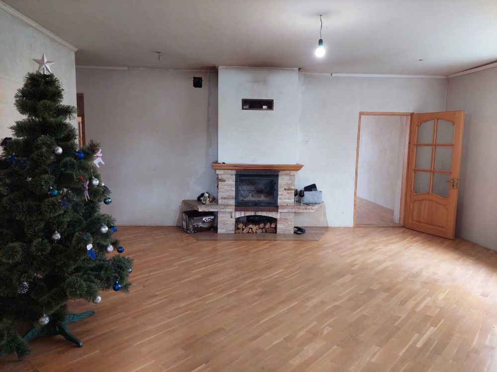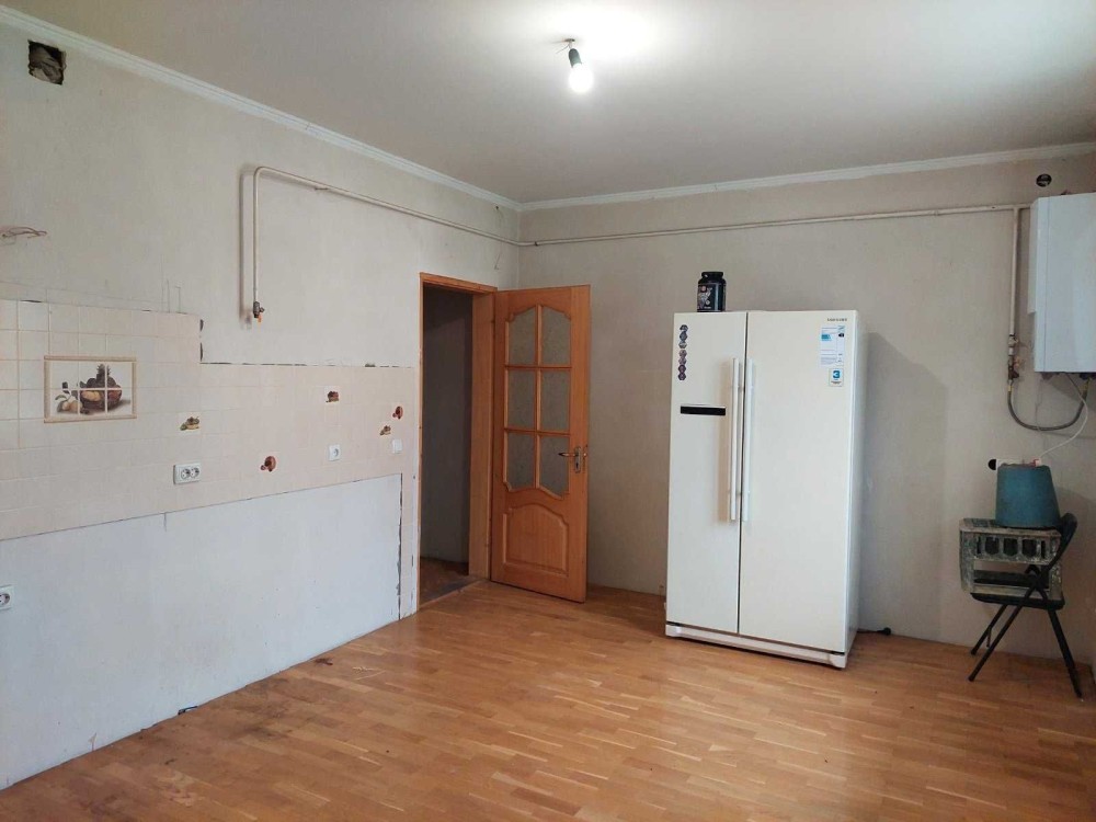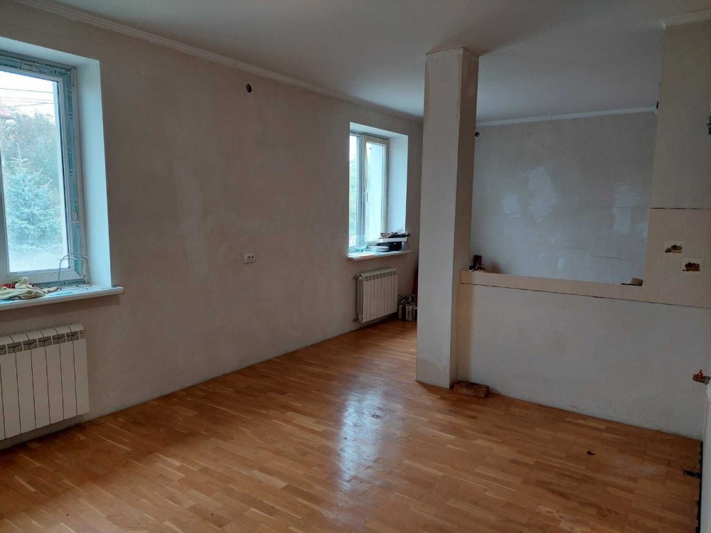 -Перший поверх (110 кв.м): дві затишні спальні, простір вітальня площею 33 кв.м, столова 22 кв. м, кухня 13 м.кв та сумісний санвузол. На цьому поверсі зроблено якісний ремонт: паркетна підлога, оштукатурені стіни (залишилось пофарбувати). Опалення автономне — двоконтурний котел. Перший поверх вже готовий для комфортного проживання.