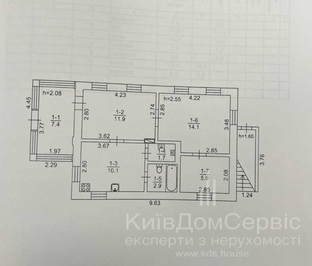 Погріб – 1,5 м²;