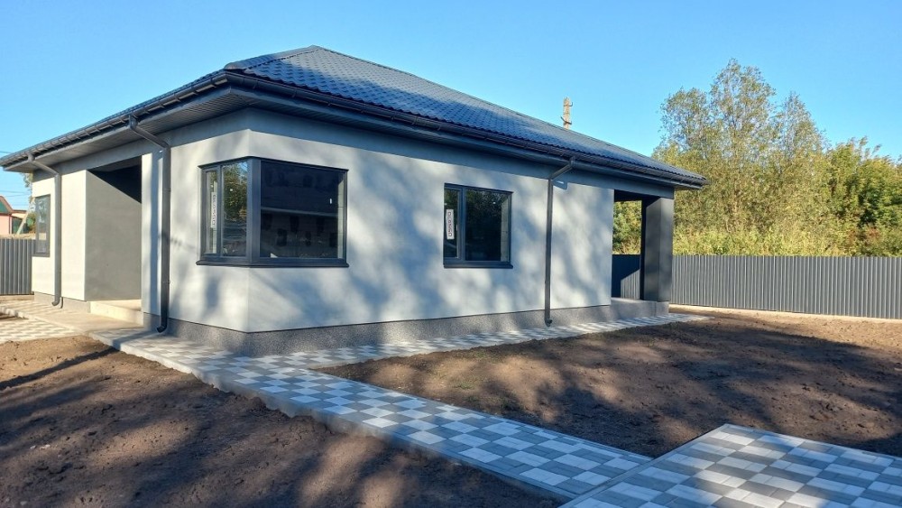 Фасад декоративна штукатурка, дах із металочерепиці з утепленням мінватою. Встановлені якісні енергоефективні вікна Glasso.