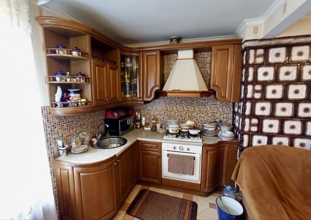 Кухня виготовлена з дерев'яних гнутих фасадів від виробника Інтерстиль. Духова шафа, витяжка, бойлер, пралка, електричний підігрів підлоги у санвузлі. Все для комфортного і повноцінного життя.
