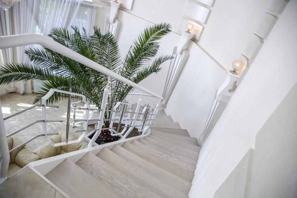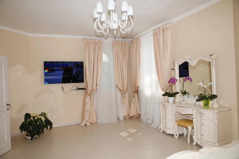 Дом имеет 4 спальни , детская , кабинет , 3с/у, гостиная с камином , две кухни ( основная и хозяйская ) множество подсобных помещений .