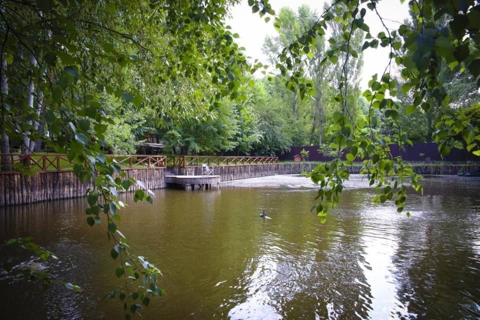Сам участок рельефный, расположен каскадами с разными высотными уровнями, что придает ему особую живописность. Здесь растет большое количество взрослых лиственных и хвойных деревьев и кустарников, есть огород и хороший плодоносящий сад, три зарыбленных озера, фонтаны .По всей территории расположены беседки и места для отдыха и барбекю.