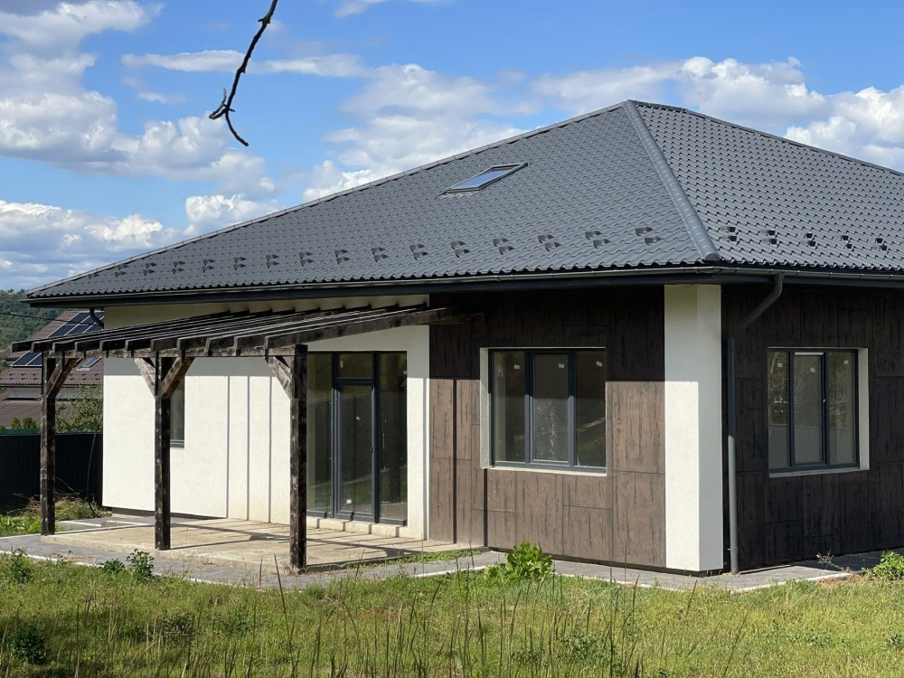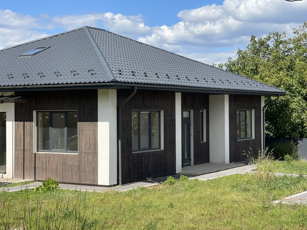 Будинок в 1-поверх, сучасне зручне планування. 4-кімнати 2-санвузла. Мансарда. Кухня студія 40мʼ світло 3-фази 24кВт.