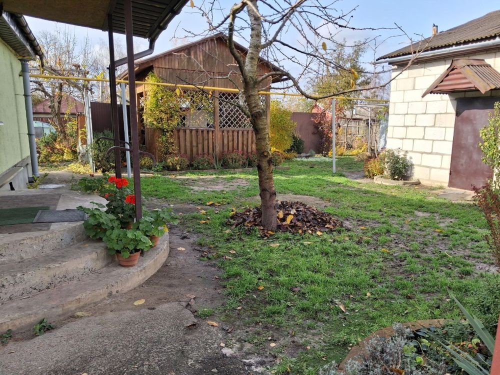 Продаж будинку с ділянкою на перехресті Київської і Сумської вулиць в стані заїзжай і живи. Будинок 96 кв.м, має 2 спальні, залу, кухню і санвузол з ванною з гідромасажем. Опалення газове, є камін, вода централізована, каналізація великий септик. В будинку новий дах з виходом на горище, якісне утеплення та баранець щтукатурка. Всі вікна металопластикові. В будинку гарний ремонт. Також є вентильований погріб. Ділянка 11 соток. На ділянці величезний гараж з металевими воротами та хоз. блок в одному корпусі. Є гарна деревʼяна альтанка для відпочинку всією сімʼєю. Цегляний вуличний туалет та великий металевий літній душ. Гарний фасадний забор. На ділянці є фруктові дерева які дають гарний врожай. Грунт чорнозем.