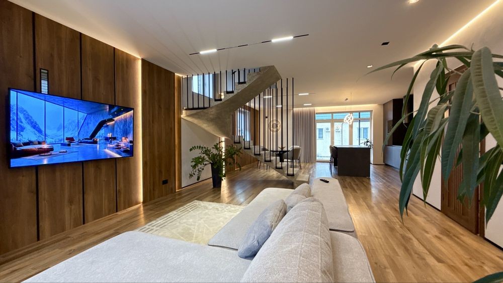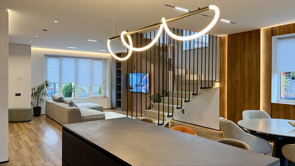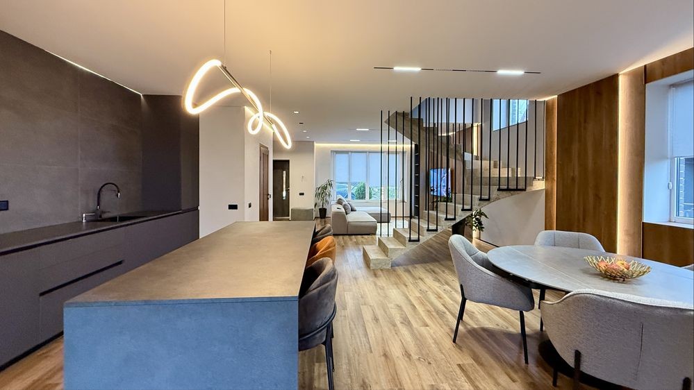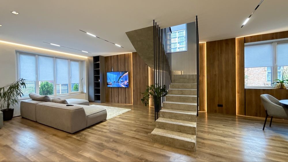 Загальна площа дуплекса 220м2 , з них 120м2 основного + 2 тераси + цокольне приміщення 60м