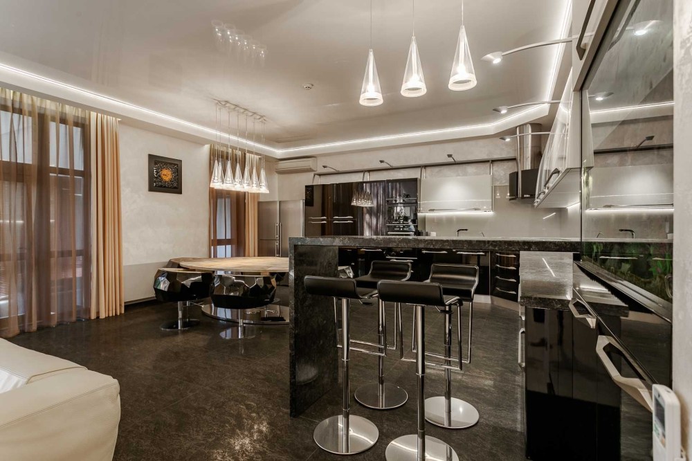 - Кухня-вітальня: Оснащена найкращою технікою Bosch та ексклюзивним обіднім столом Fendi зі шкіри пітона. Ідеальне місце для сімейних вечорів і прийомів гостей.