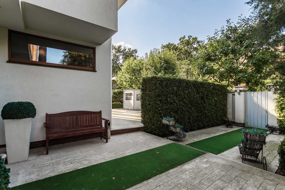 - Доглянута територія з соснами, дизайнерським ландшафтом та автоматичним поливом.