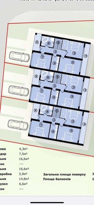 - 2 пов.3 кімнати , санвузол , 2 балкони