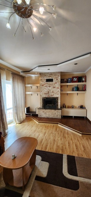 Другий поверх - вітальня з каміном, санвузол, кухня -столова, балкон.