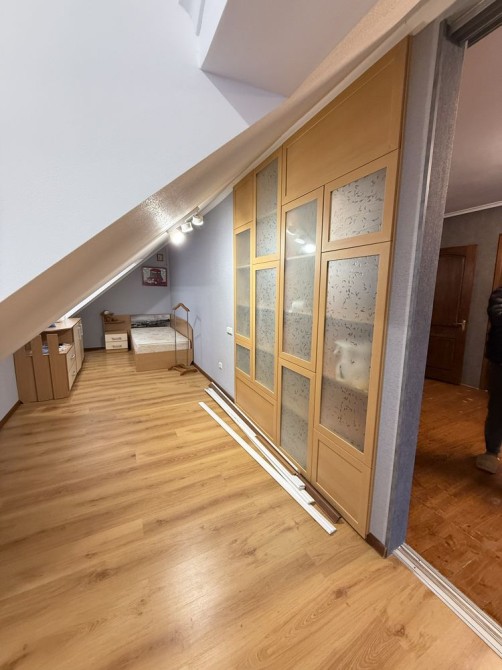 На 1му поверсі розташовані дві окремі кімнати , кухня , санвузол. Другий поверх ( мансардний) розташовані три кімнати , з них дві окремі та гардеробна кімната .