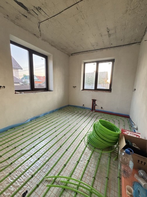 Будинок новий, будували для себе з якісних матеріалів. Дах металочерепиця, утеплений. Проведено електрику (3 фази), воду, каналізацію, газ, інтернет. Є тепла підлога, радіатори, енергозберігаючі вікна з німецького профілю, бойлер. Виконано внутрішню штукатурку. Є сучасний конденсаційний котел Vaillant.
