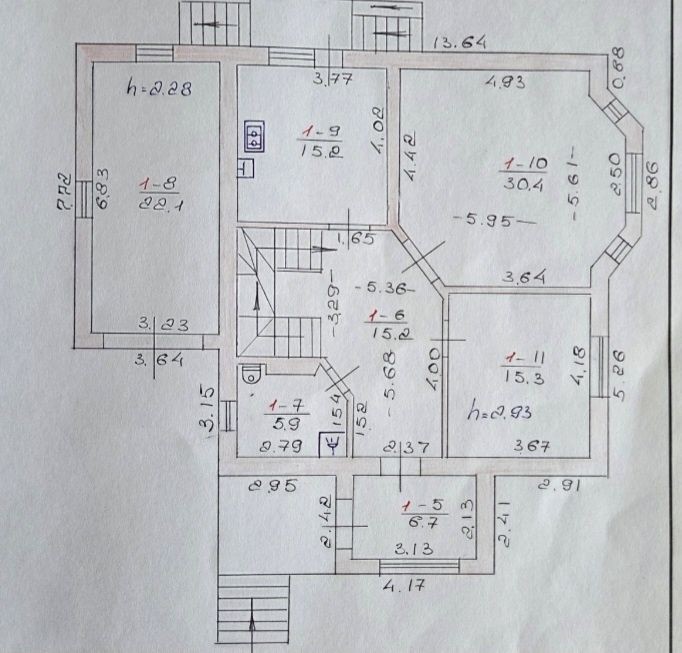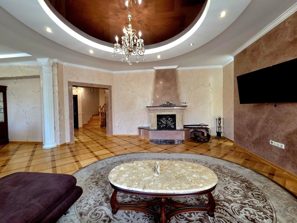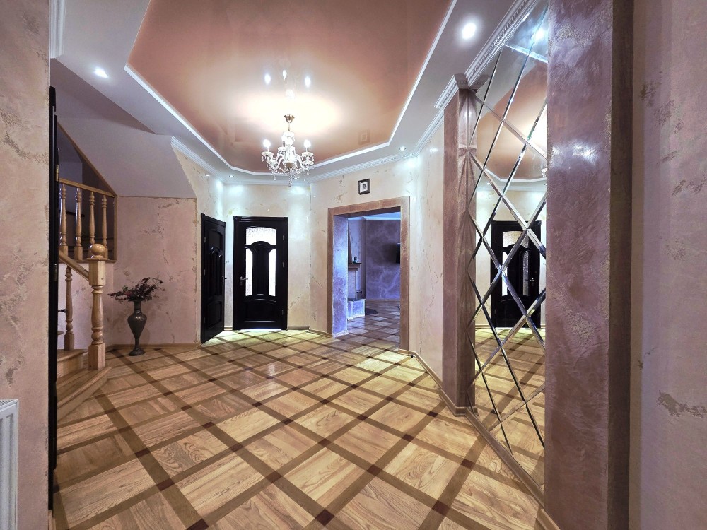 Загальна площа 271 кв м (включає підсобні підвальні приміщення і гараж), житлова -128 кв м.
