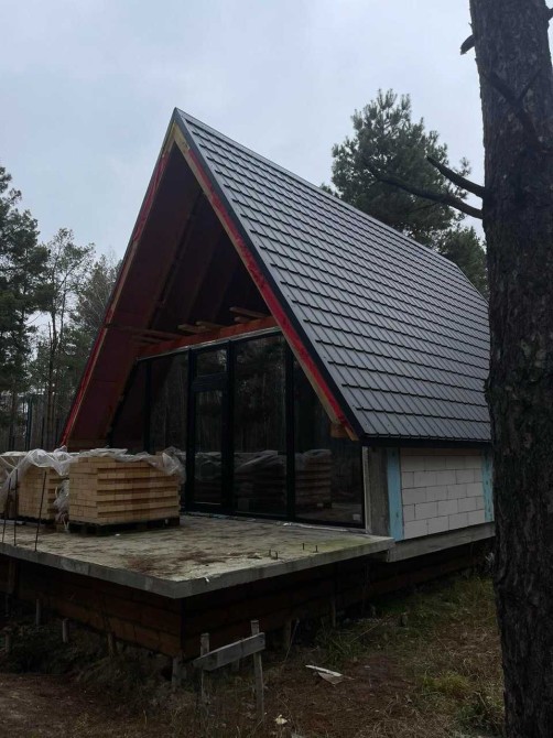 Будинок у сучасному скандинавському стилі загальною площею 80 м², має два поверхи та простору терасу. Розташований у мальовничій лісовій зоні, що забезпечує відчуття гармонії з природою, тишу та свіже повітря. Водночас до міста лише 20 км, що робить локацію зручною для постійного проживання або заміського відпочинку.