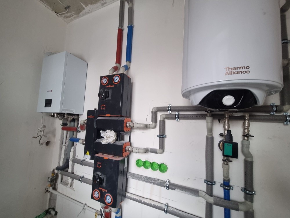 По будинку розведена електрика, сантехніка, тепла підлога по всьому будинку, газовий конденсаційний котел Protherm, насосна група Італія, бойлер непрямого нагріву, насос свердловини з автоматикою.