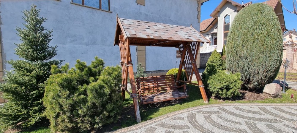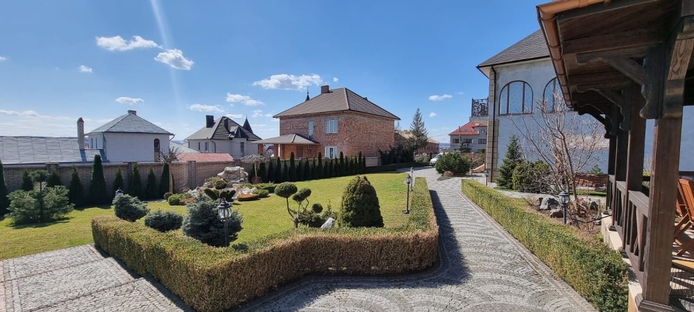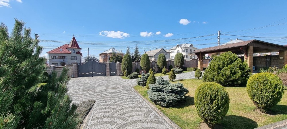Велика територія (18соток)з ландшафтним дизайном, окремо є гостьовий будиночок з обладнаною лаундж зоною.