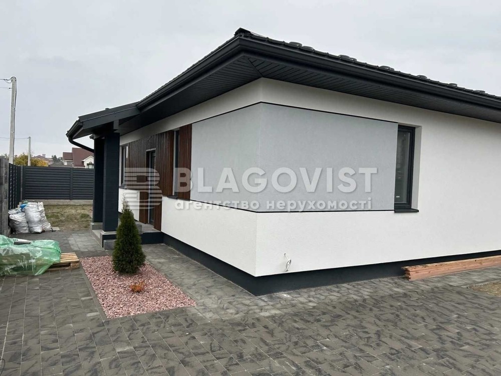 Продається одноповерховий будинок поверх. 85,1 квадратних метрів , 3 кімнати. Будинок розташований в 7 км від Києва, в зручному транспортному сполучені (Одеський напрямок), мальовниче місто, навколо ліс, озера, садовий центр - Парк, розвинута інфраструктура дитячий садок, школа, магазини Сільпо,Фора,стадіон, дитячі майданчики.