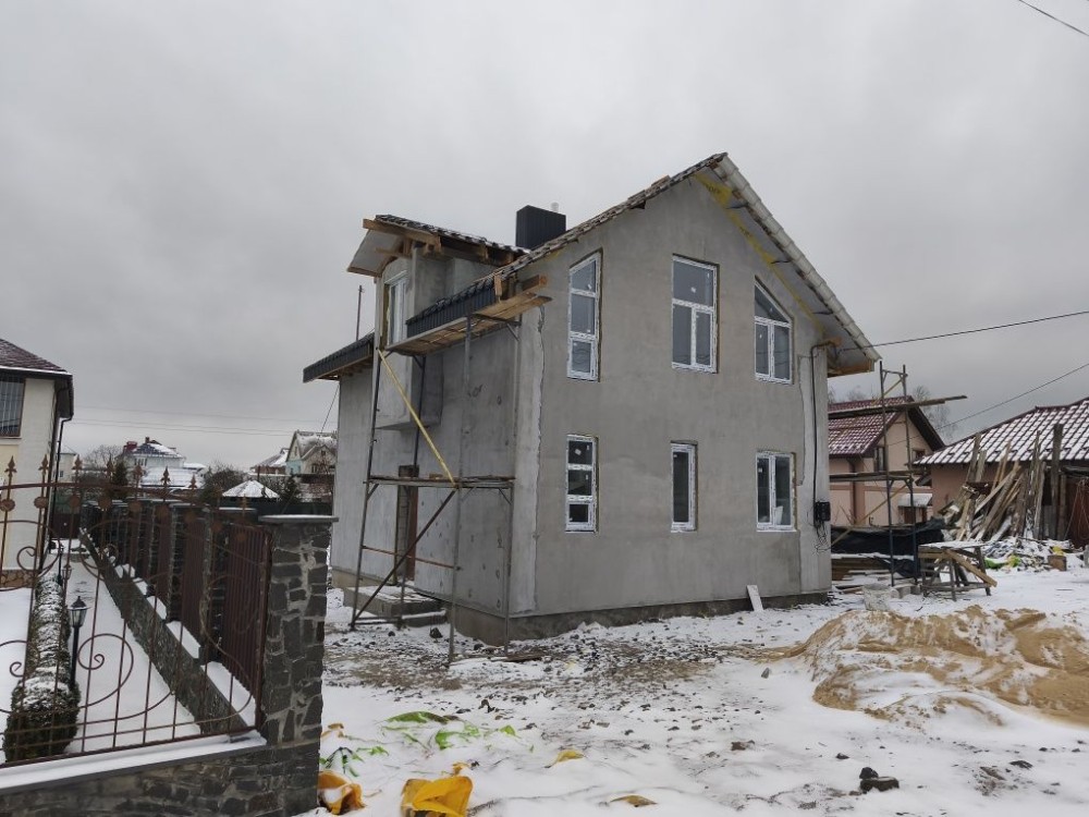 Накрита коробка без внутрішніх робіт Глибина фундаменту 1.2м. Товщина стіни без утеплювача 30см. Утеплення - базальтова вата 5 см . Товщина армпоясу 30*20см)