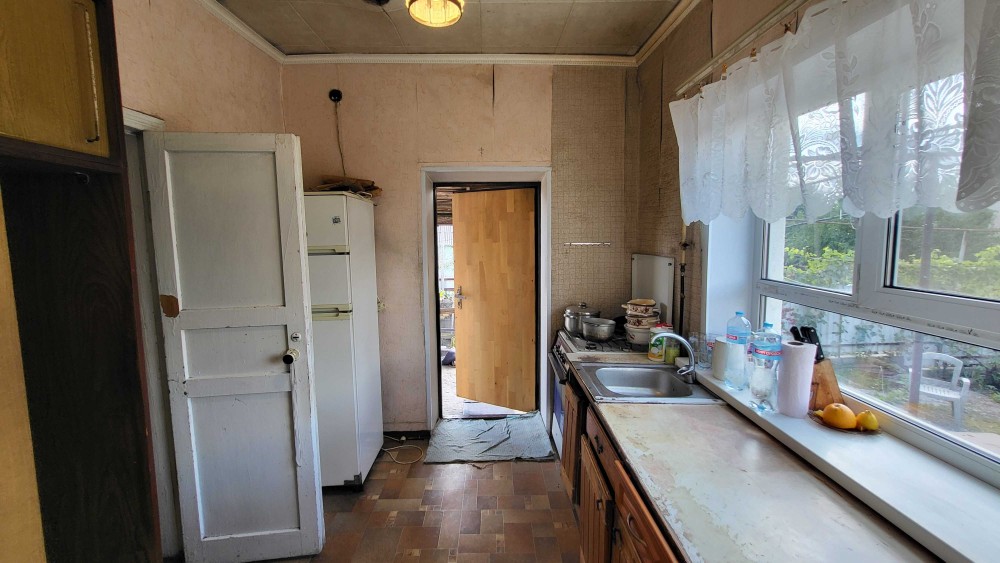 Продаж будинку (загальна площа 58,8 кв.м) м. Запоріжжя, вул. Учительська, Заводський район. Будинок розташован у гарному місці. Поруч: Дніпр, школа, магазин, транспорт та т.п.. Будинок побудований на грунтовному, бутовому фундаменті, стіни із самана + якісної цегли, криша шифер (сухий та чистий чердак). В будинку: чотири кімнати, дві суміжні + кухня + суміжний санвузел (ванна) + передпокій. Вікна та труби м/пл.. В будинок заведени: вода + світло + газ (2-х контурний котел). Є лічильники: на воду, на газ, на електроенергію. У дворі: житловий будинок + ганок + літня кухня + льох + вбиральня + сарай + недобудована літня кухня + водопровід + хвіртка + паркан + сад + огород. Будинок теплий, просторий. Затишний двір. Порядні сусіди. Поруч уся інфраструктура. Зареєстрованих в будинку не має. Документи готові к продажу. Будинок та земля ПРИВАТИЗОВАНІ.